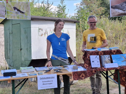 Am 24. August 2025 fand im Naturschutzzentrum Bergstraße das NABU- und Krötenretter-Fest statt. Unsere Projektgruppe war mit einem Info-Stand präsent, bei dem die Mauersegler im Mittelpunkt standen. Viele interessante Fakten über die Segler erfuhren die Gäste außerdem durch einen Vortrag, den Birgit Blumenstiel und Andreas Ziegler hielten. Die beiden informierten insbesondere auch darüber, was bei der Anbringung von Nisthilfen beachtet werden sollte. Der Vortrag fand großen Anklang.
